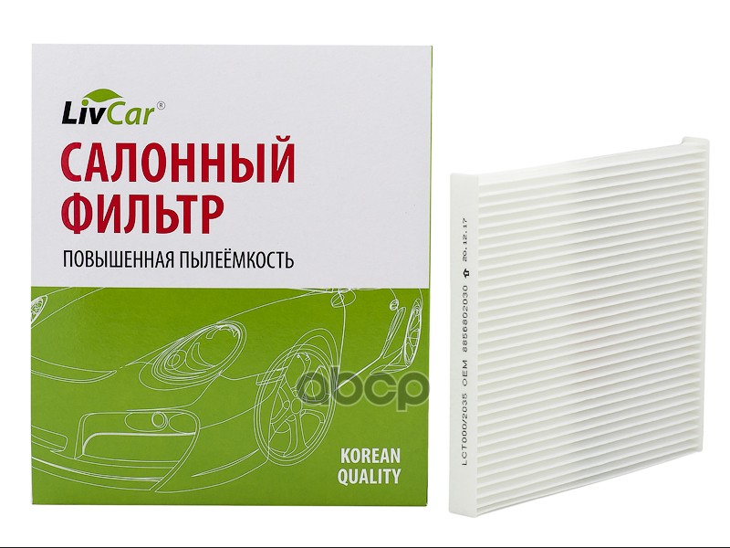 Фильтр салона Toyota Corolla (E120) 01-07, Avensis (T250) 03-08 LivCar LCT000/2035 CU2035;CUK2035;8856802030;87139YZZ07;8856802030PP;0897400850;MC2004;AG570CF;AG177CFC;AMDJFC95C;GB9830C;ADT32508;ADT32528;DX41017H;K1123A;AS904C;LAC145C;EC8621;15212143;FS02