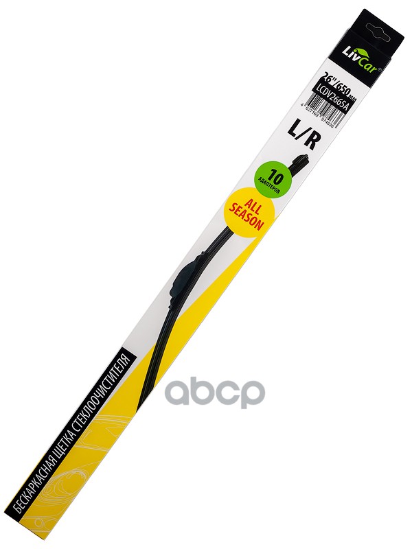 Щетка стеклоочистителя бескаркасная LivCar All Season, 26''/650 мм Universal. 10 адаптеров