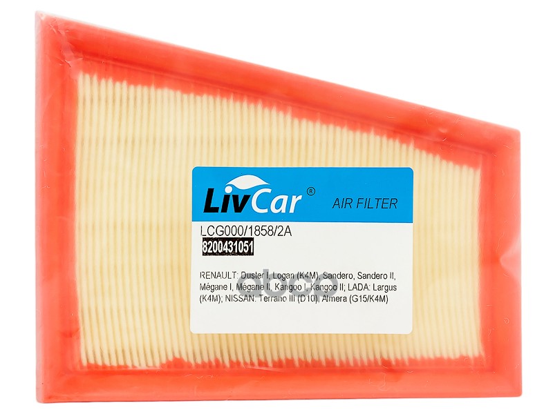 Фильтр воздушный LivCar ОЕМ 8200431051 RENAULT LADA NISSAN (LHD) Полиуретан RENAULT:DusterI,Logan(K4M),Sandero,SanderoII,MeganeI,MeganeII,KangooI,KangooII LADA:Largus(K4M) NISSAN:TerranoIII(D10),Almera(G15/K4M)