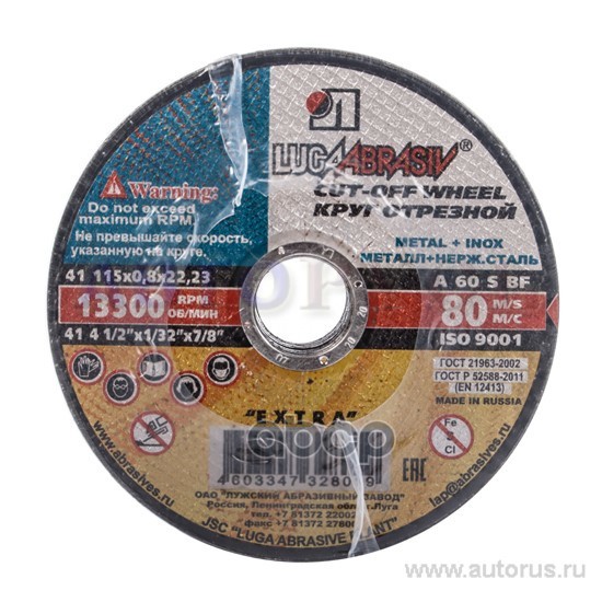 Наименование: LUGA КРУГ ОТРЕЗНОЙ 115Х0.8Х22ММ ПО МЕТАЛЛУНЕРЖ