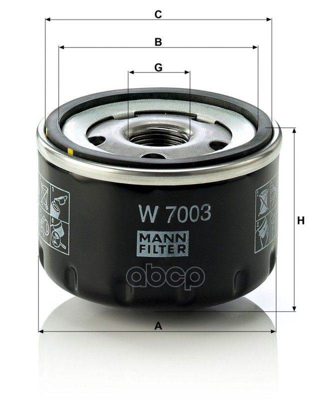 Бренд: MANN-FILTER, артикул: W7003, Фильтр масляный FIAT DOBLO (119/223) 1.9 JTD W7003. |