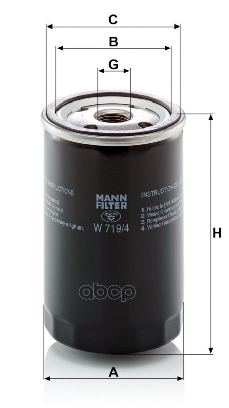 Наименование: Фильтр MANN-FILTER W 719/4 (W 719/28) (W 719/6) Масляный фильтр