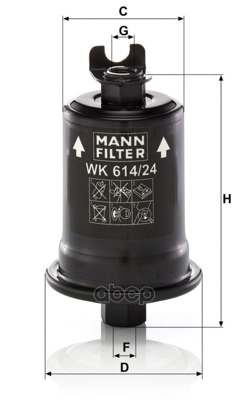 Бренд: MANN-FILTER, артикул: WK614/24X, Фильтр топливный MITSUBISHI Colt/Lancer 92-96/TOYOTA Camry 2.2-3.0 91-01/CHRYSLER. |
