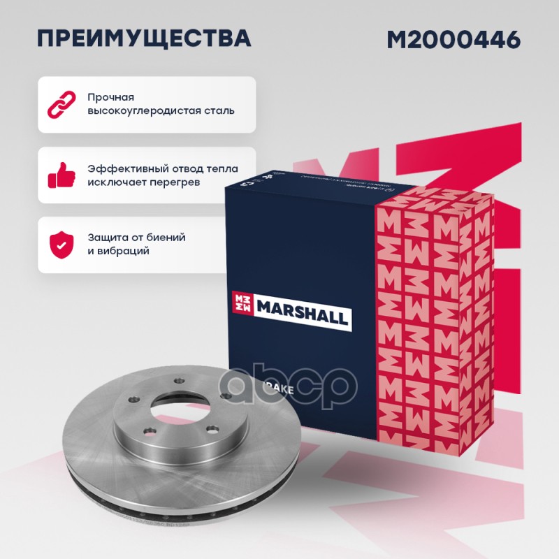 Диск тормозной Nissan Primera (P12) 02-, X-Trail (T30) 01-07, Almera Tino 98- передний Marshall M2000446 DF4316;402063Y502;402063Y503;402064U101;402064U103;402064U105;402064U107;402064U105;402064U107;402068H300;402064U101;BD2103;BN1108;ADC0260V;