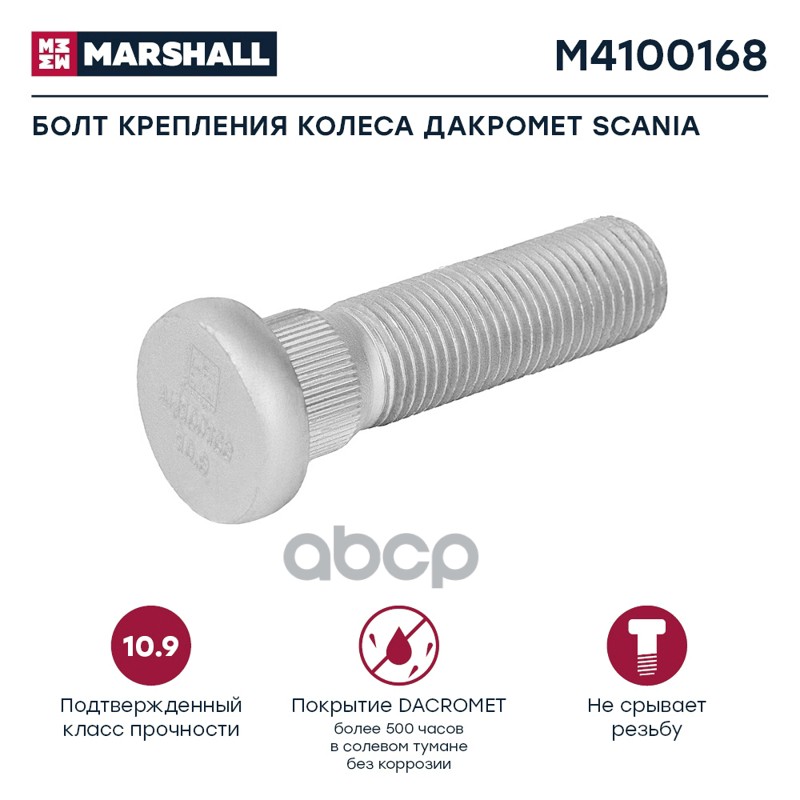 Купить запчасть M4100168 Болт крепления колеса для грузовиков Scania L=85 7/8 11BSF с доставкой в Эль-Монте.