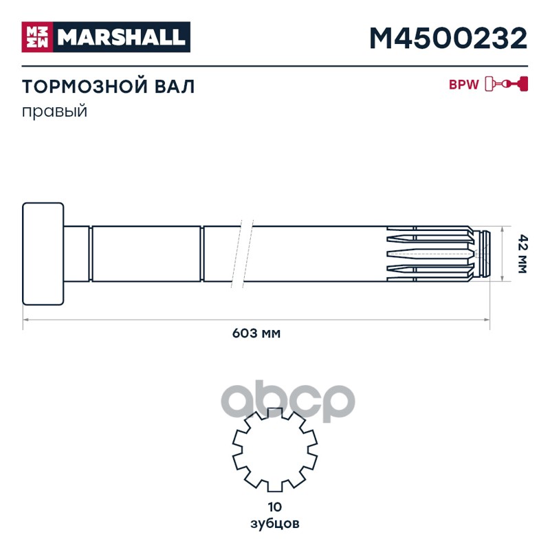 Купить запчасть M4500232 тормозной вал правый l=603BPW H/R SN4212-22 KH/KR SN3 с доставкой в Эль-Монте.