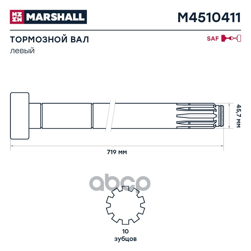 Купить запчасть M4510411 ВАЛ ТОРМОЗНОЙ ЛЕВЫЙ SAF О.Н. 2262110302 с доставкой в Эль-Монте.