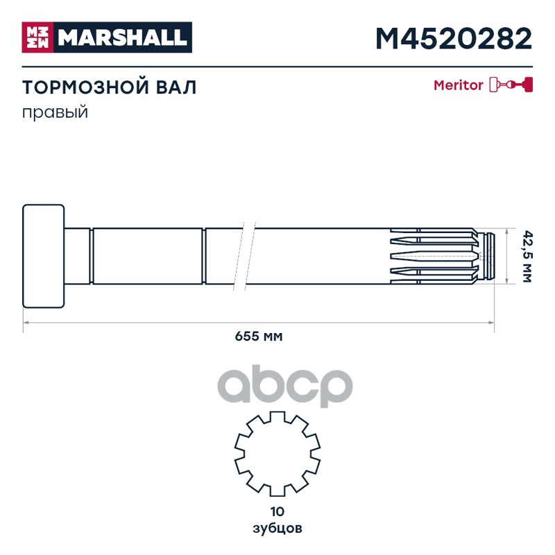 Купить запчасть M4520282 вал тормозной правый (Z) L=655/610мм d=42 ROR TE Yumbo 17.5'' с доставкой в Эль-Монте.