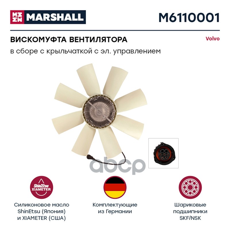 Купить запчасть M6110001 Вискомуфта вентилятора в сборе с крыльчаткой с электронным управлением Вольво о. с доставкой в Эль-Монте.