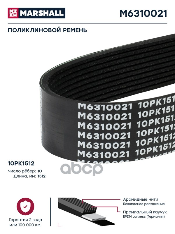 Купить запчасть M6310021 ремень поликлиновой 10PK1512 RVI, Volvo FH13(G1) с доставкой в Эль-Монте.