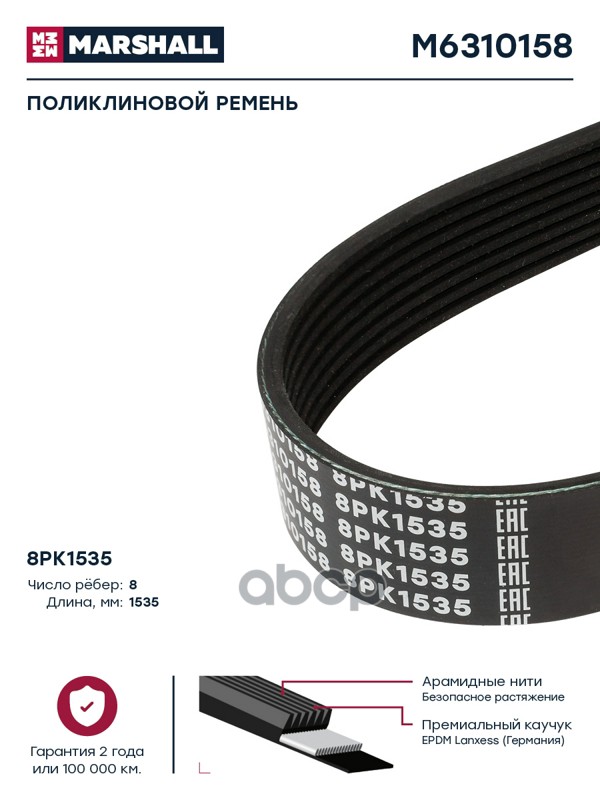 Купить запчасть M6310158 ремень поликлиновой 8PK1535 Scania с доставкой в Эль-Монте.