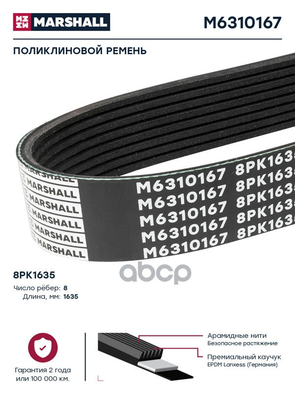 Купить запчасть M6310167 Поликлиновой ремень 8PK1635 (M6310167) с доставкой в Эль-Монте.