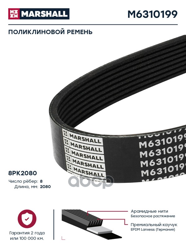 Купить запчасть M6310199 Поликлиновой ремень 8PK2080 (M6310199) с доставкой в Эль-Монте.
