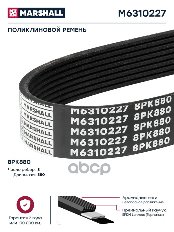 Купить запчасть M6310227 Поликлиновой ремень 8PK880 (M6310227) с доставкой в Эль-Монте.