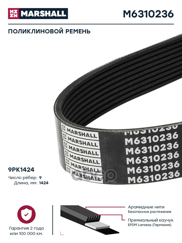 Купить запчасть M6310236 Поликлиновой ремень 9PK1424 (M6310236) с доставкой в Эль-Монте.
