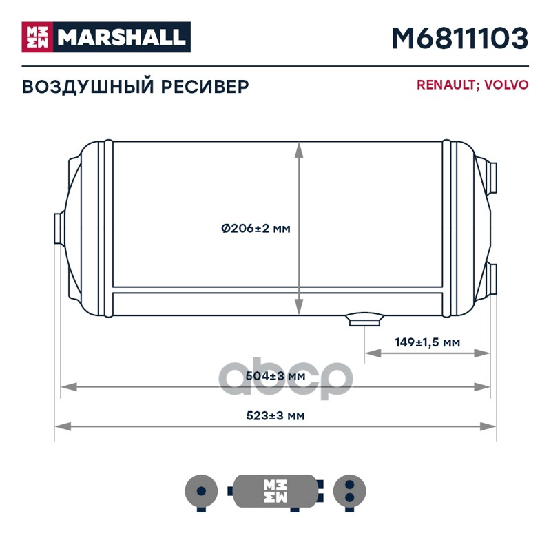 Наименование: ресивер воздушный V=15L 206x523 P=15.5bar Volvo FH/FM