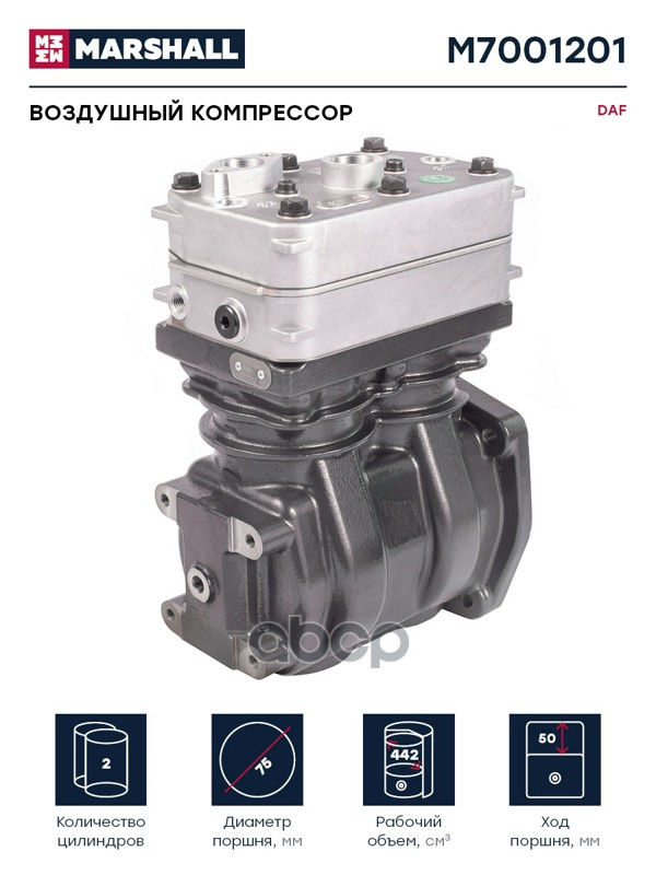 Купить запчасть M7001201 Воздушный компрессор DAF двухцилинд. 442 cc, о.н. с доставкой в Эль-Монте.