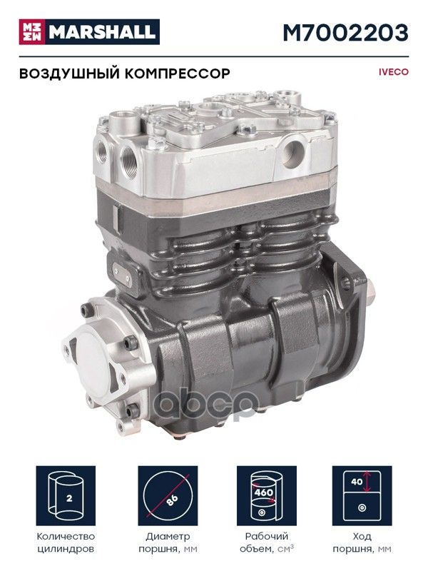 Купить запчасть M7002203 Воздушный компрессор IVECO двухцилинд. 460 cc, о.н с доставкой в Эль-Монте.
