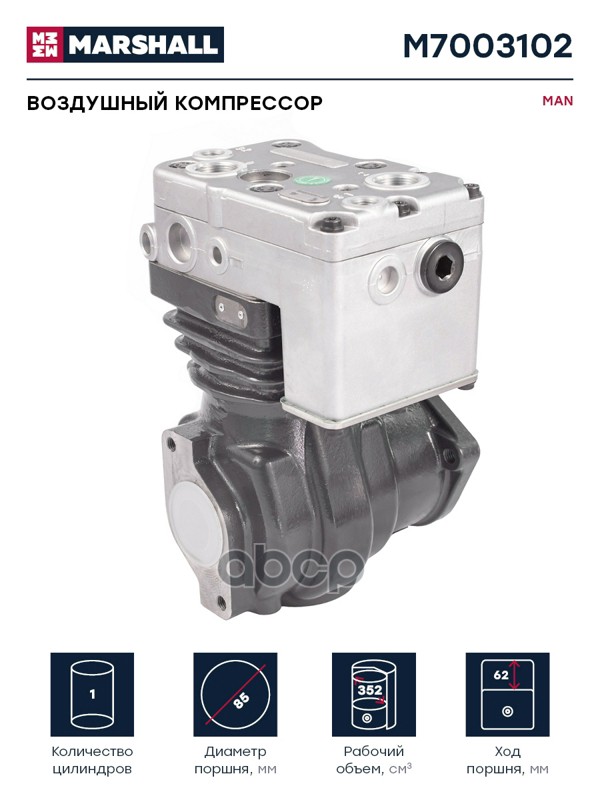 Купить запчасть M7003102 Воздушный компрессор MAN одноцилинд. 352 cc, о.н. 4123520030 M7003102 с доставкой в Эль-Монте.