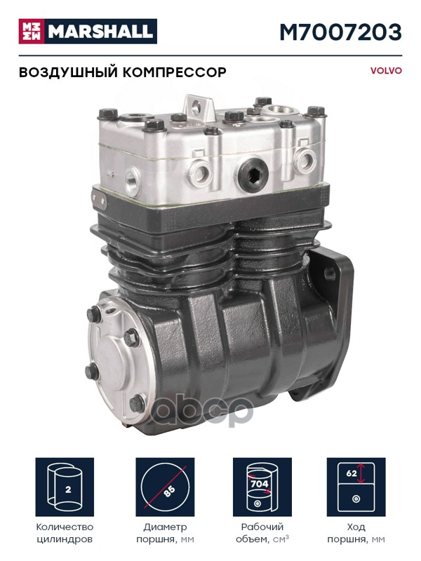 Купить запчасть M7007203 Воздушный компрессор ВОЛЬВО двухцилиндровый 704 куб.см., о.н. 9115051507 (M70072 с доставкой в Эль-Монте.
