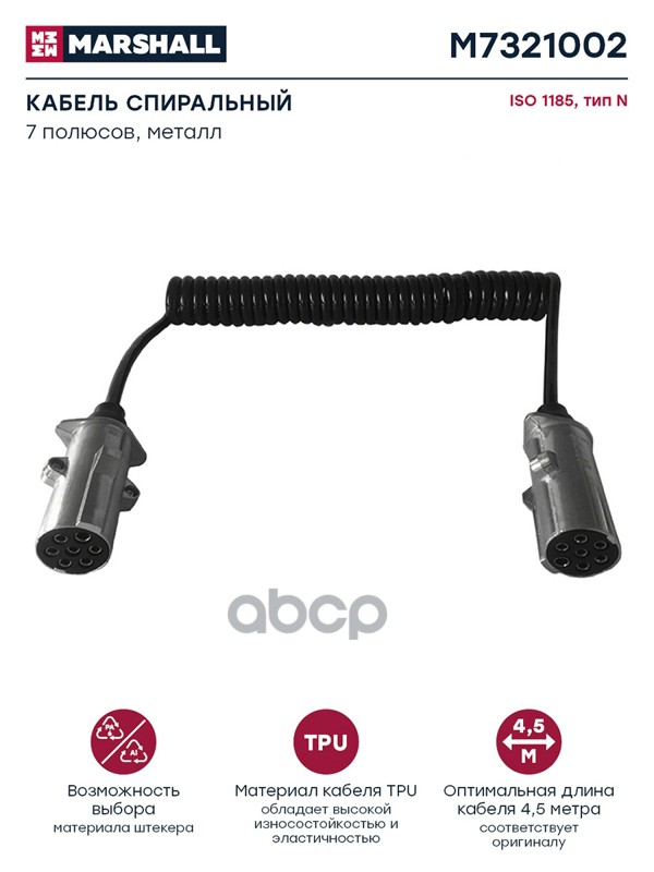 Купить запчасть M7321002 кабель спиральный металл. 7/7 пол., Type N, Lmax=4500, 24V EURO6 с доставкой в Эль-Монте.