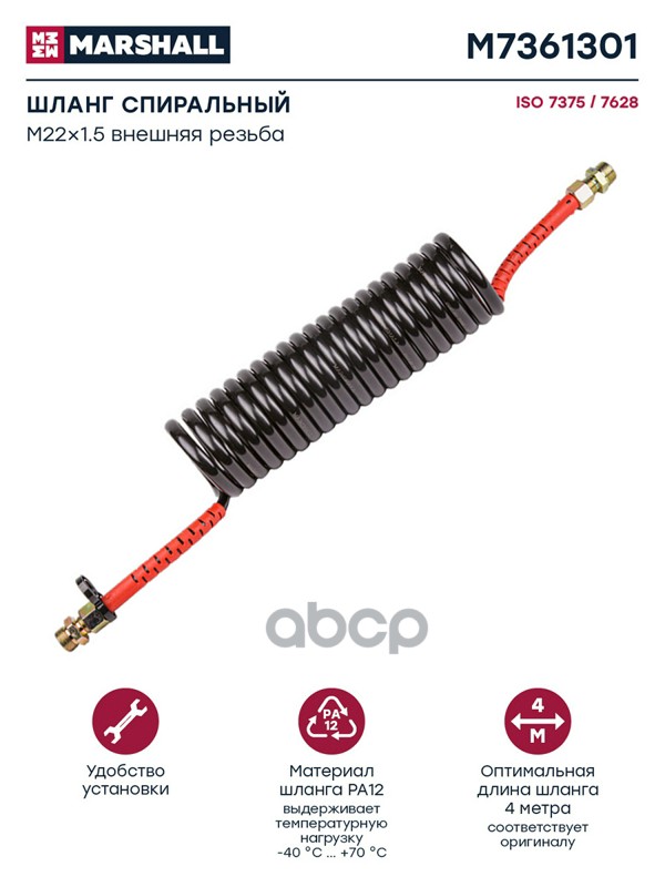 Купить запчасть M7361301 Шланг спиральный красный, штуцеры M22x1.5 (2), L = 4 м, 20 витков (M7361301) с доставкой в Эль-Монте.