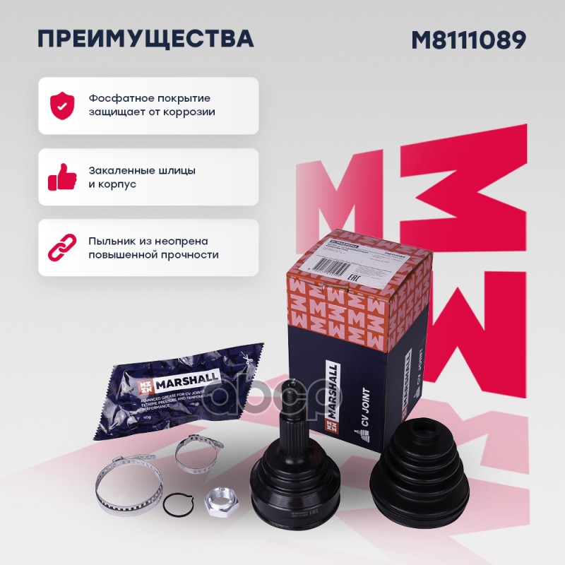 Бренд: MARSHALL, артикул: M8111089, ШРУС внешний (без ABS) Audi 80/90 (B3) 86-, Audi 100/200 (43, 44) 77- 301002;AD-002;SA-004;1143301910;100 498 0100;150 1025-SX;15-1025;75701S;803004;DCV803004;GA0102;GA20005;GS-3148;JCT0250;PCV1025;CO-1207;GCO52002;GCO83004;803 498 099 A;CW-2593;1710-002;. |