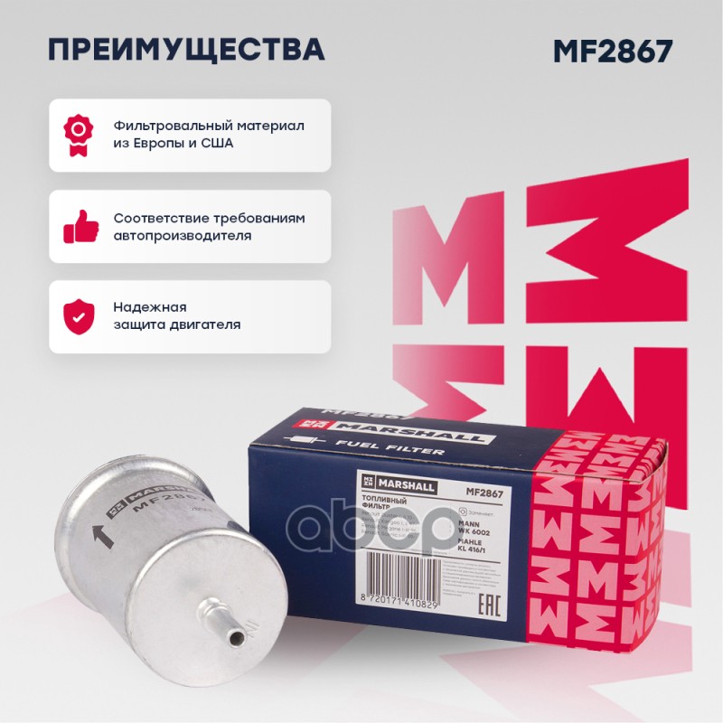 Купить запчасть MF2867 Фильтр топливный Renault Logan 04-, Citroen C4 09-, C5 04-; Peugeot 207 06-, 307 00- Marshall с доставкой по России.