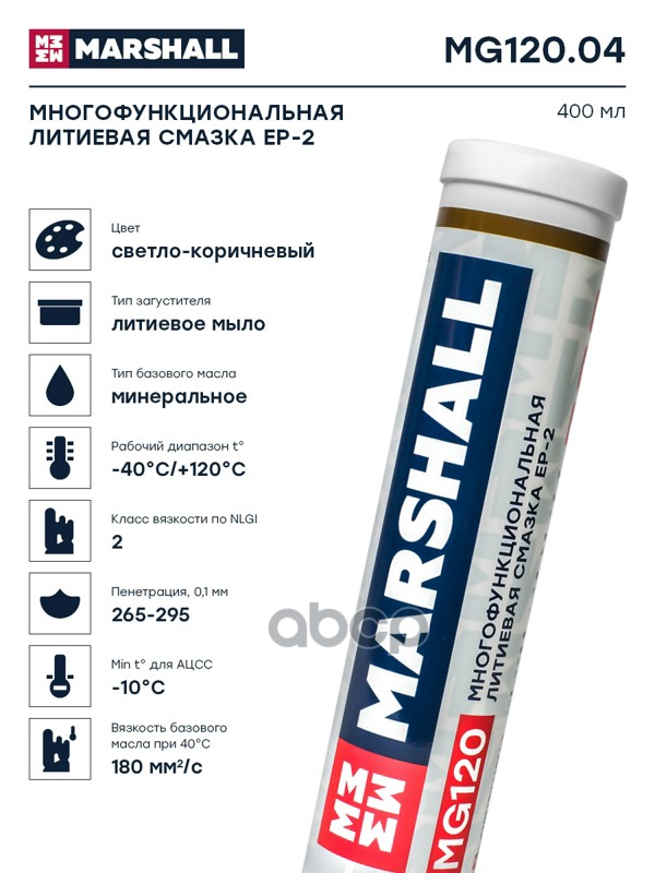 Смазка многофункциональная литиевая EP-2 (патрон 400 гр) MARSHALL TOTAL, CASTROL, VAG, DAF, LIQUI MOLY