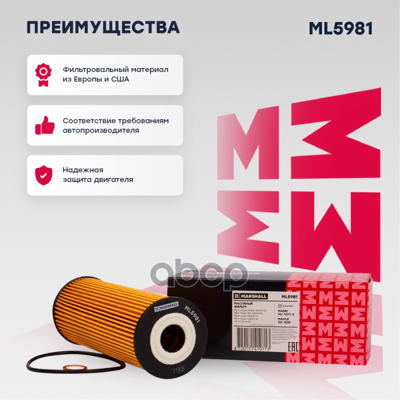 Купить запчасть ML5981 Фильтр масляный MB C-Class (W202, W203) 93- / E-Class (124, W210) 93- / V-Class 96- VW LT 28-46 96- с доставкой в Эль-Монте.