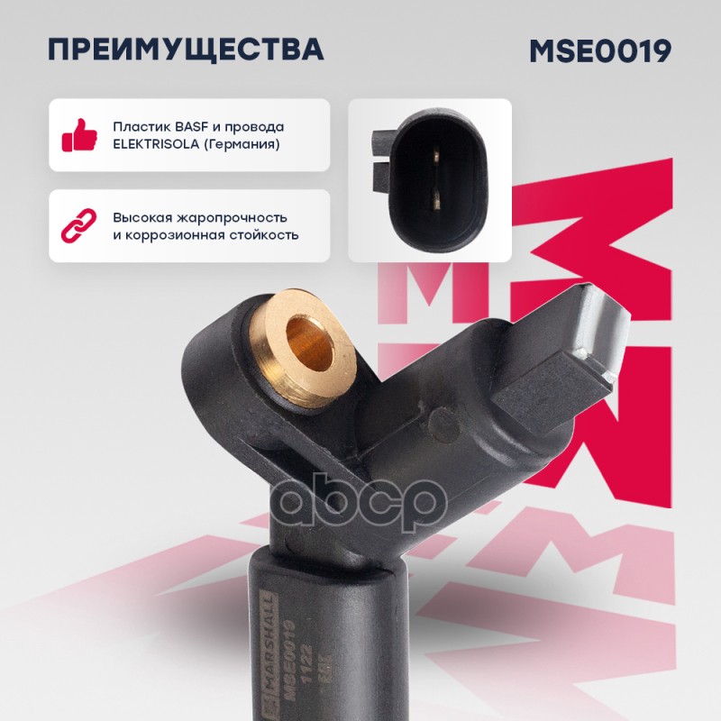 Бренд: MARSHALL, артикул: MSE0019, Датчик ABS Audi A3 (8L) 96- Skoda Octavia I 96- Volkswagen Amarok 11- Volkswagen Bora 98- Volkswagen Caddy 95- Volkswagen Golf III, IV 91- Volkswagen Jetta 92- Volkswagen Lupo 98- Volkswagen Passat III 88- Volkswagen Polo III 94- Volkswagen Vent. |