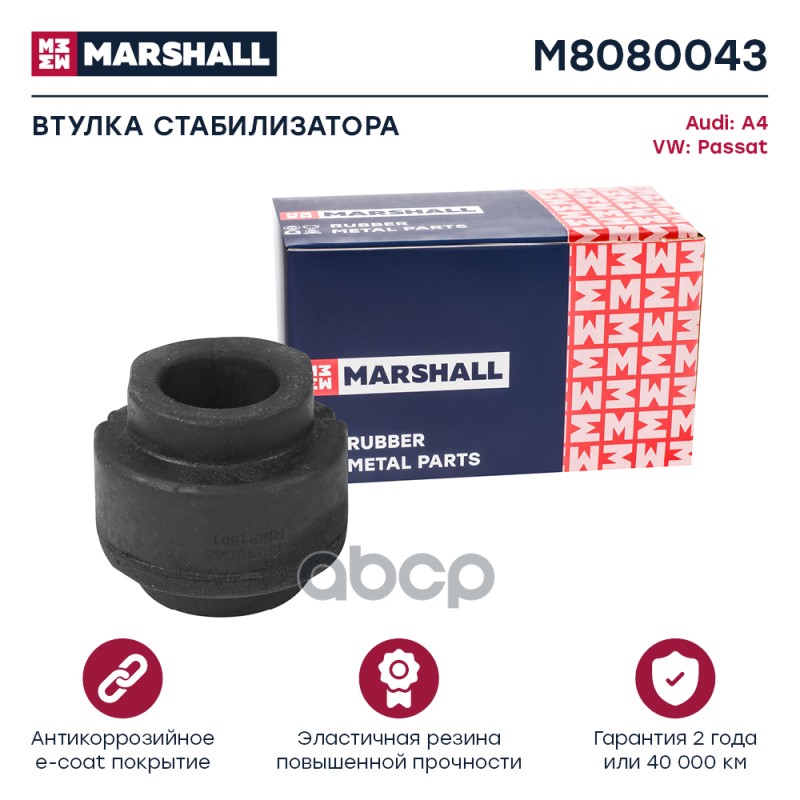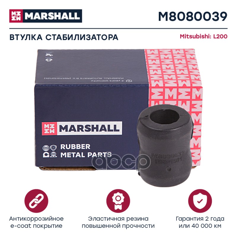 Втулка стабилизатора Mitsubishi Pajero Sport 98- переднего Marshall M8080047 MR267649;MR151326;41128;871814;80941128;ADC48037;BS10167;CVM14;F88033;GM1166;GOJ565;GOM565;GV0364;M8080047;MISB14948;PSE2328;RU565;TD1907W;4560062;M053SV;MTT01247;0407005;MSB005;
