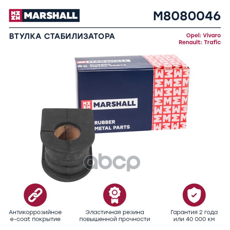 Втулка стабилизатора Opel Vivaro 01-; Renault Trafic 01- Marshall M8080046 6000620074;91166695;93858901;93861802;5461100QAE;4408905;4417971;4418991;546113587R;8200048177;8200629180;8200845492;271437;ABB107;38OP7000;BSK7016K;75700054;GV0915;110187910;82000