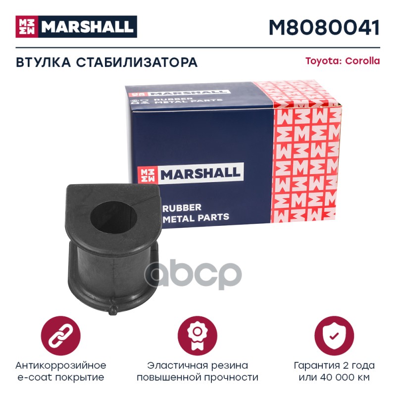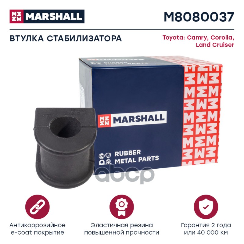 Втулка стабилизатора Toyota Corolla (E150, 180) 09-, Avensis (T270) 08-11 переднего Marshall правая M8080054 4881502150;4881512400;4881512390;20893;42841;101025;450342;845823;1011278;1011279;1011713;81942841;4881512390;30146150004;10J1373;450342BLACK;7901
