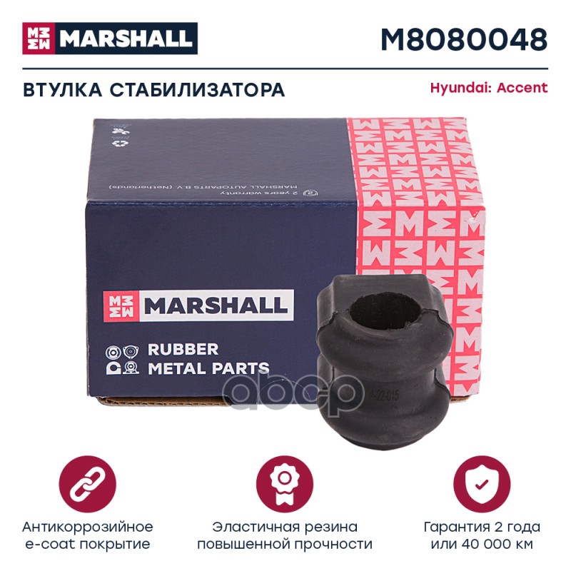 Втулка стабилизатора Kia Rio (JB) 05-11; Hyundai Verna 06- переднего Marshall M8080048 548121G100;41585;00286989;887802;4560050;12012709;40700150;90941585;37146150002;10K1096;190046BLACK;240015BLACK;ABH1027;ADG08071;ARG123140;BL13002;BL13014;BSK7355K;CRK0