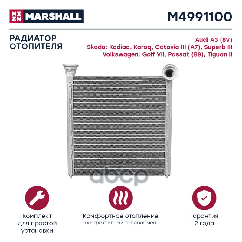 Радиатор отопителя VAG Octavia (A7) 13-, Golf VII 12-, Tiguan II 16-, Kodiaq 16- (тип Valeo) Marshal M4991100 5Q0819031;5Q0819031B;54342;73980;630154;715303;30108187;630154755;1126301900;1150110076;88191272701;8FH351511674;AH256000S;AIA6385;LRH1852;PRS217