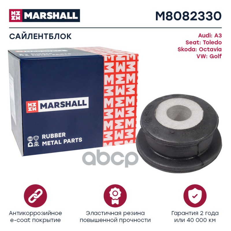 Сайлентблок VAG Cordoba 93-, Ibiza 94-, Toledo 91-, Golf 91- Marshall M8082320 191407181;357407181;191407181A;191407181B;191407181D;191407181E;191407181DS;00543;01931;02660;07847;07857;10205;17641;23418;70685;70686;102774;102775;270314;510025;1020502;1516