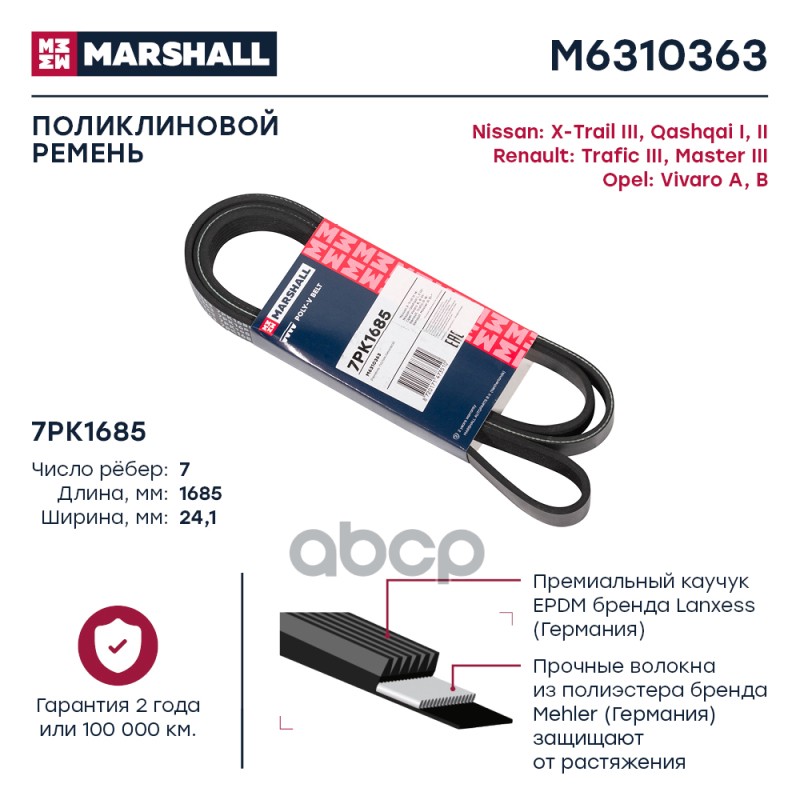 Ремень поликлиновой 7PK1685 Nissan X-Trail III 14- / Qashqai I, II 07- Renault Master III 10- (M631