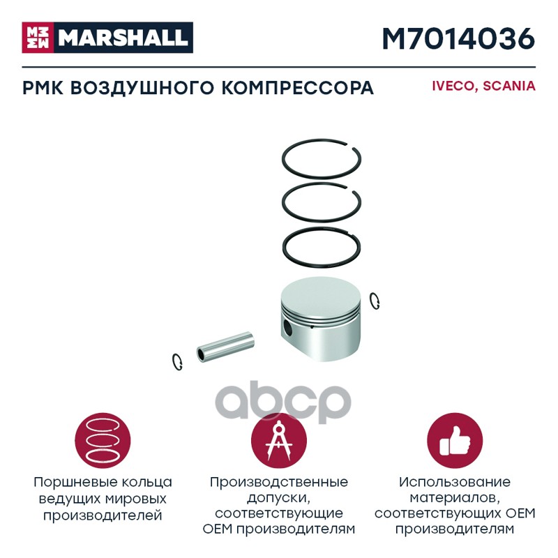 MARSHALL — бренд с нидерландскими корнями, производит запчасти для большинства популярных марок грузовых, легковых автомобилей и спецтехники. Товары производятся исключительно по чертежам и стандартам OEМ. |