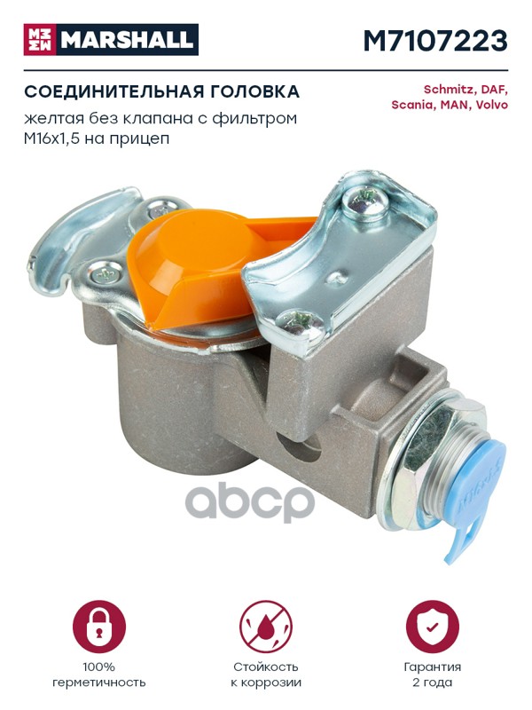 соединительная головка (желт.) без клапана с фильтром M16x1.5 внутр Omn MB, RVI, BPW