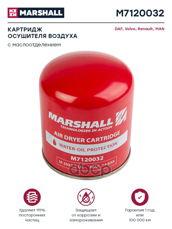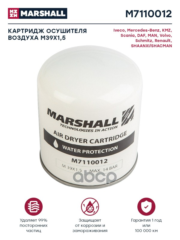 MARSHALL — бренд с нидерландскими корнями, производит запчасти для большинства популярных марок грузовых, легковых автомобилей и спецтехники. Товары производятся исключительно по чертежам и стандартам OEМ. |