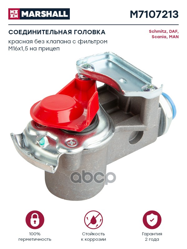 соединительная головка (красн.) без клапана с фильтром M16x1.5 внутр Omn MB, RVI, BPW