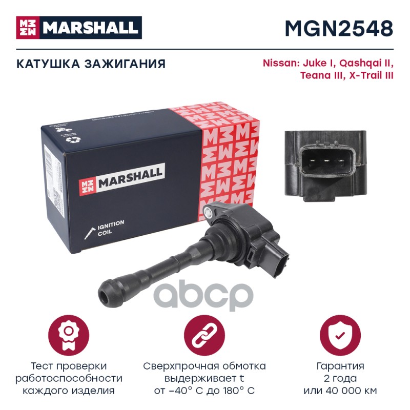 Катушка зажигания Nissan Juke I 10-, Qashqai II 13-, Teana III 13-, X-Trail III 14- Marshall MGN2548 2503929;224481KC0A;224481KC0A;12155;20682;48397;78115;80450;133929;133929;173537;880457;2503929;6908189;7801115;8010717;8530461;19374111;5DA230036541;5DA3