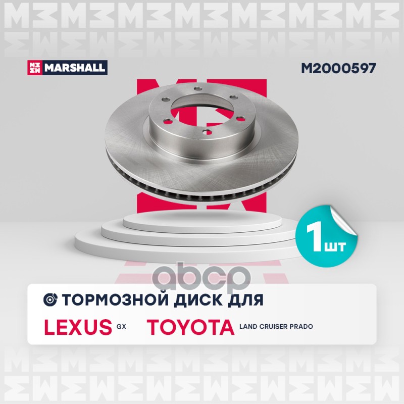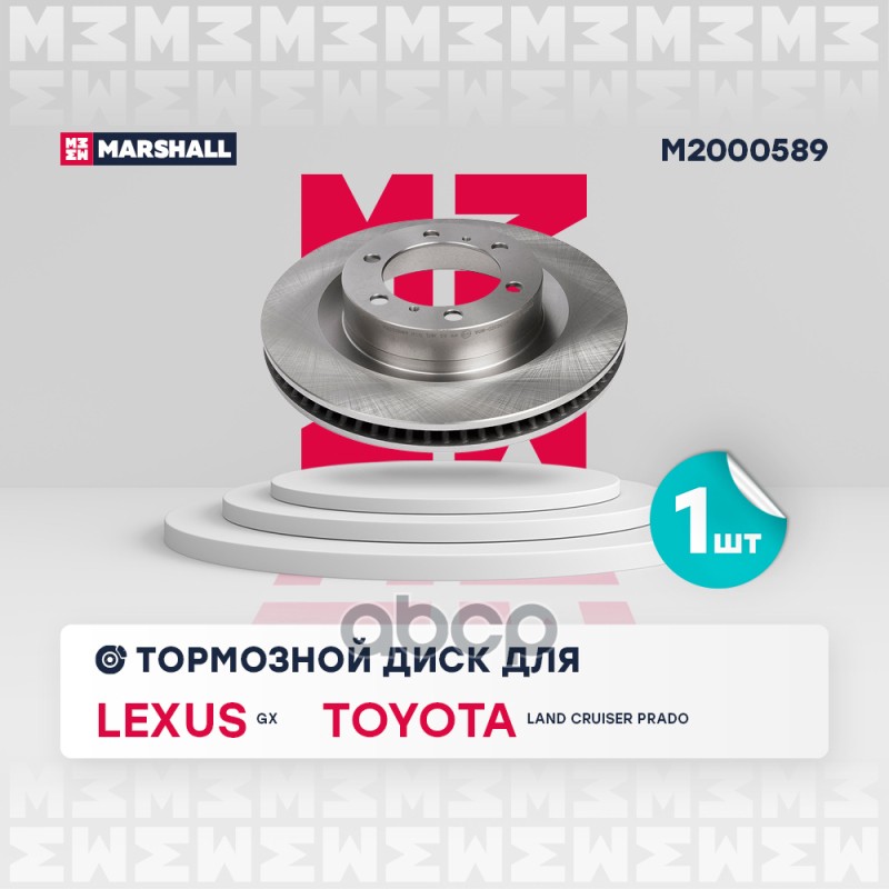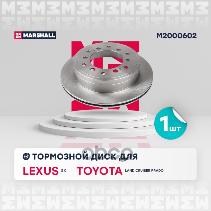 Диск тормозной Toyota Land Cruiser Prado (J150) 10-; Lexus GX 09- задний Marshall M2000602 DF6342;4243160311;18335;ADC80103V;6102253;ADT343281;09A33420;09A33421;DP253;61253;RN1553;J3312033;ND1093;3145177;92231003;297295;590282120;BD1515;BN1635;SD4027;M200