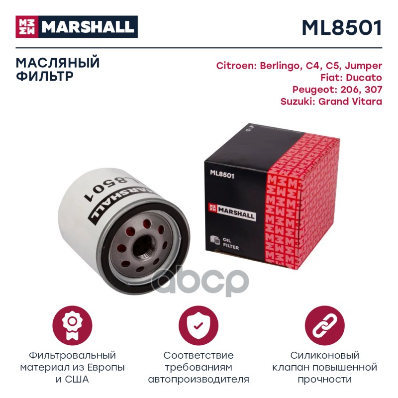 Фильтр масляный BMW X1 (F48, U11) 15-; X2 (F39) 17-; Mini Clubman 15-; Hatch 13- Marshall ML9698 11428513948;11428570590;11428575210;11428585237;47224;1689031780;3143220006;10ECO134;1ECO134;ADB112108;CH11885ECO;E833HD321;ELH4464;F026407204;FOECO134;HU6015