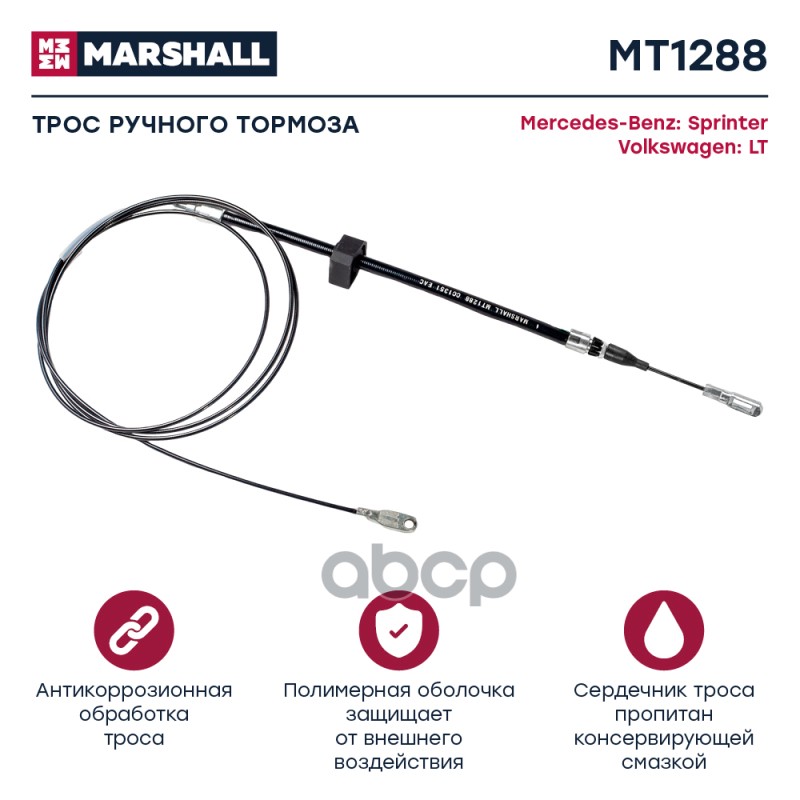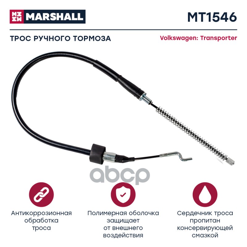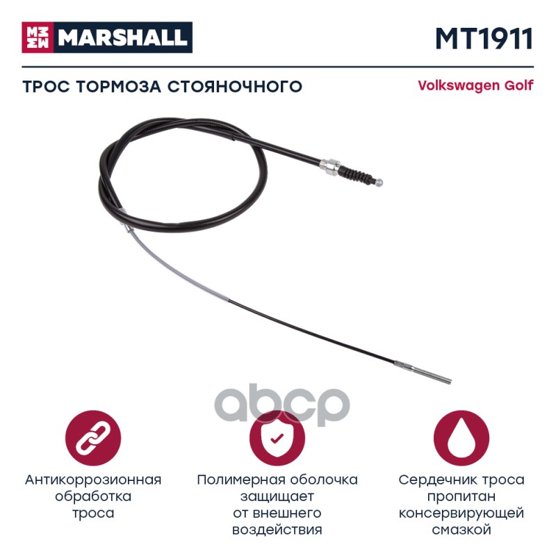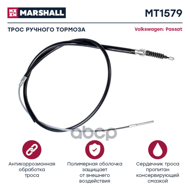 Трос ручного тормоза VAG Passat (B3,B4) 88- Marshall MT1579 357609721A;357609721D;357609721E;
