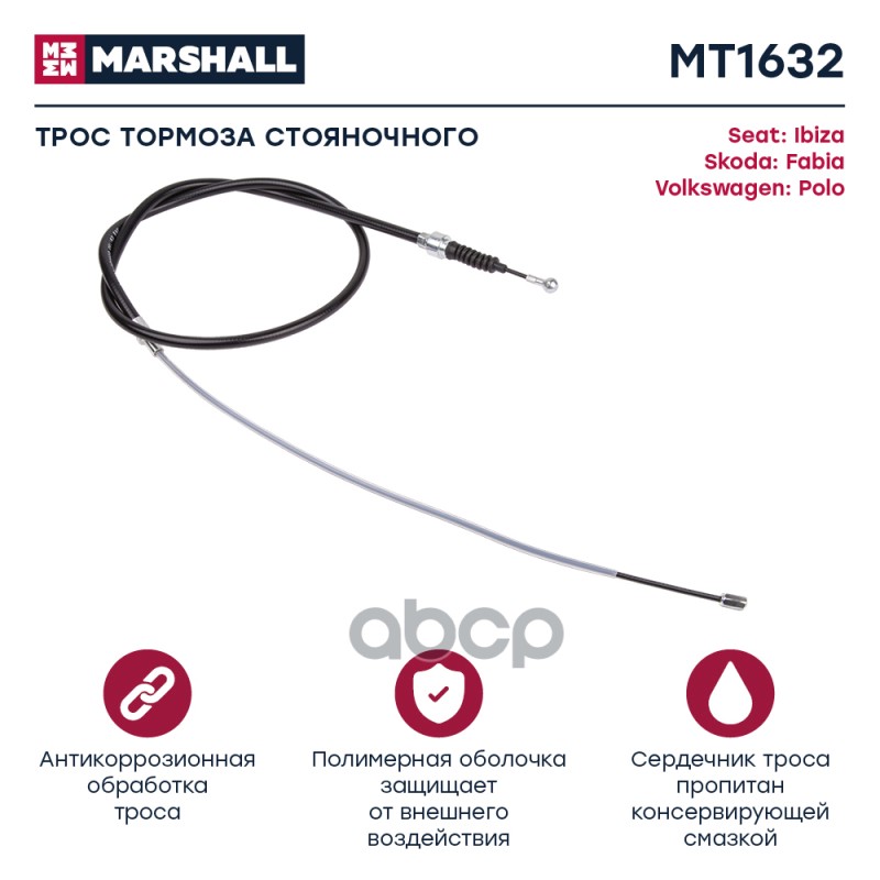 Трос ручного тормоза Chevrolet Lacetti Marshall левый MT1520 96418134;96418134;96435117;96435117;96549800;96549800;96808379;96808379;