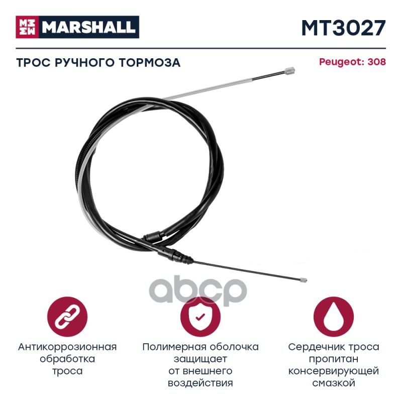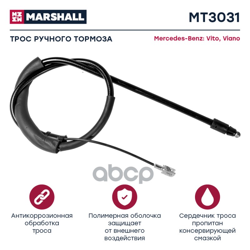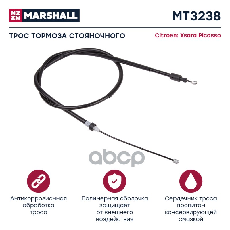 Трос ручного тормоза Chevrolet Captiva I 06-; Opel Antara 06- Marshall MT3266 96625953;4804783;96879436;BS0512;QZ96879436;0196625953;KBC020;EI000081;2998822SX;ST520099;ARG131015L;Z59350R;PC3527;B01711LXG1;BCW05L;1310WW05L;131W05L;173531;9036131;ADG046212;