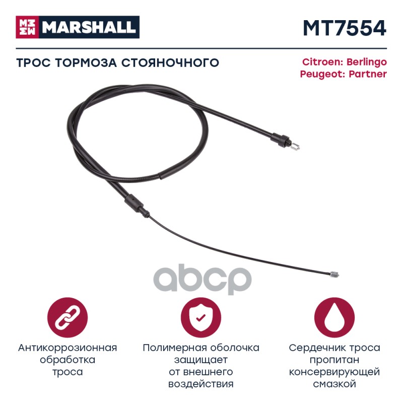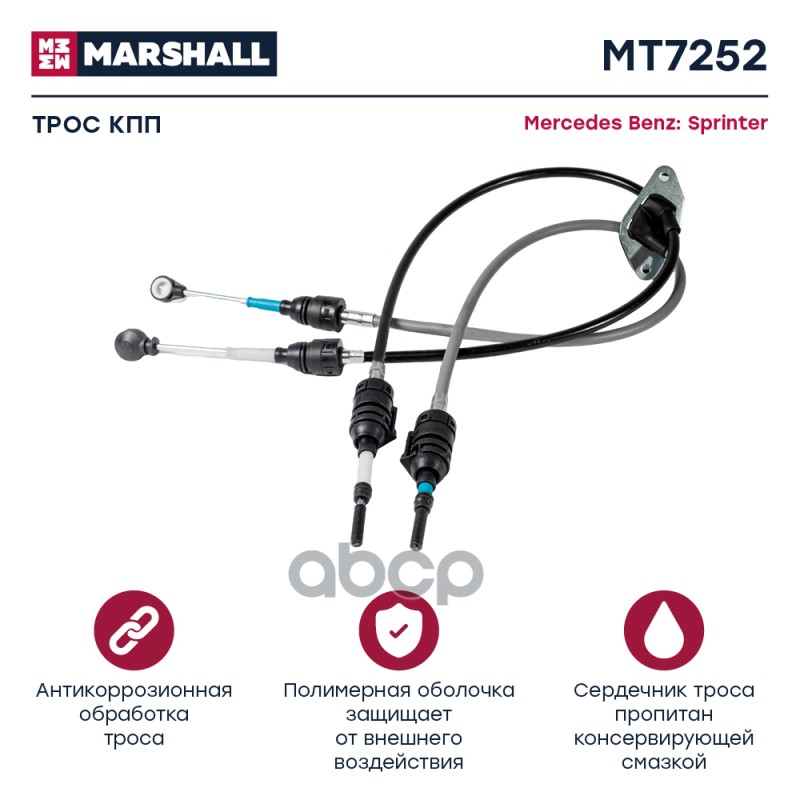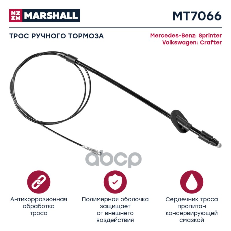 Трос ручного тормоза MB Sprinter II (906) 06-; VW Crafter I 06- Marshall MT7066 2E0609701AM;2E0609701L;9064202285;9064205185;