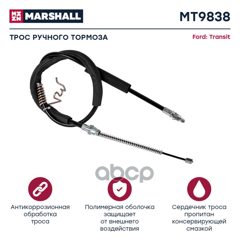 Трос ручного тормоза Ford Transit VII 06- Marshall MT9864 1388276;1734689;6C112A635BB;6C112A635BC;